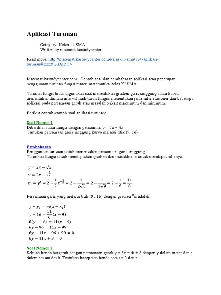 Contoh Soal Dan Pembahasan Matematika Turunan - Aplikasi Turunan Fungsi Pembahasan Soal Latihan Dari Bse Matematika Sma Kelas Xi Ipa Defantri Com / Turunan fungsi trigonometri ini adalah kelanjutan.